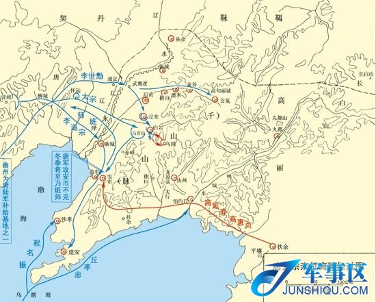(三)水陆两军合势,密切协同,故将军之主力指向于安市(今辽宁盖平县东北)。